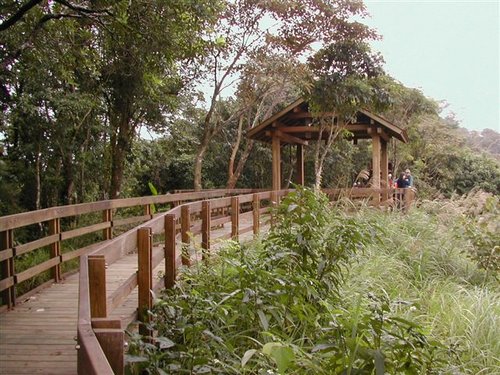 示範場後面的環山步道,全程約六百步,大部分都在樹蔭底下,沿途可了解茶苗區茶樹的生長狀況,還可以享受山林的自然芬多精,中途觀景台更是遠眺台北盆地、觀日落、看彩霞的好地方。
