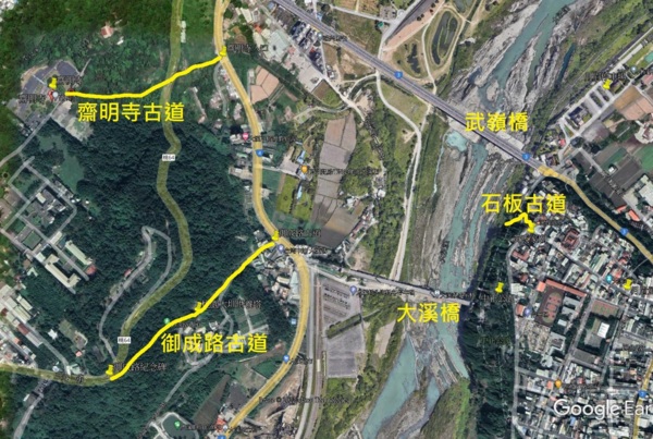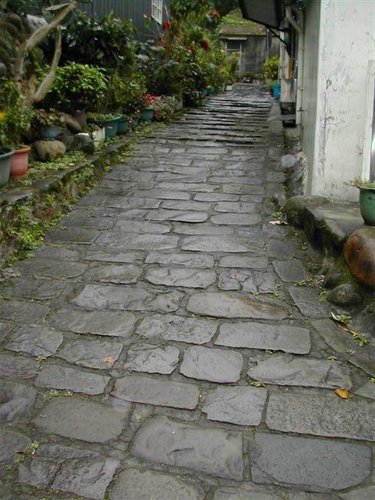 大溪地勢為河階地形逐層而降,街市為避水患自然是比碼頭高一層,而連接街市和碼頭的石板道配合地勢,整條道路頭尾高度落差自然是大,但這路造得很緩,轉折處多﹑石階階數多,讓石階之間的落差縮小。如蛇般蜿蜒的路有個好處,就是方便挑夫往來運送貨物時提腳不費力又隨時可在轉折處歇腳,似乎老的東西都有這樣的特性,處處蘊含老祖宗的智慧。