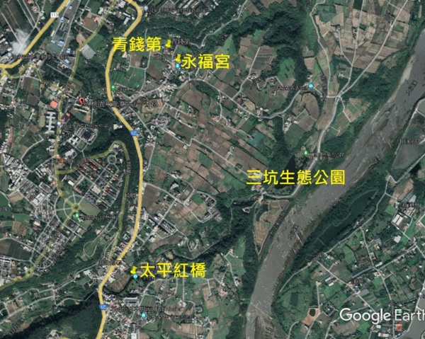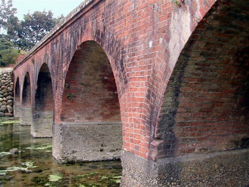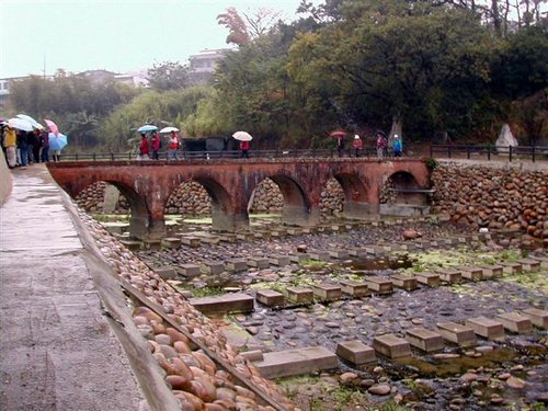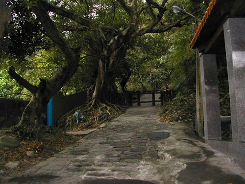 站在石板古道始端上眺望大漢溪,雖然大漢溪歷經日本大正年間桃園大濬的引水﹑石門水庫的闢建以及現代沙石業者的無情開採,水量已不如昔日豐沛,河床清楚可見,當時嵌津歸航的盛況只能懷想,懷想很久很久以前大漢溪面滿是帆船,挑夫往來奔忙於石板道上,也或許煙花女子就站在路口等著大商賈、外國人,甚至市井小民、挑夫上門交易....不過錯了這個大時代,置身石板道也只能想想罷了。