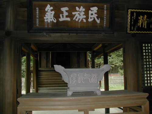 手水舍是供來參拜的人,在此先洗手、漱口、象徵洗淨身心後 才可至神前敬拜的場所。建築本身是以四支木柱蓋成涼亭形式,屋頂包覆銅 片而成。中央設有長方形水槽,一般均備有水瓢供參拜者之用。現今因已變更為忠烈祠,功能已轉變,故仍留其形而無上述之行為。