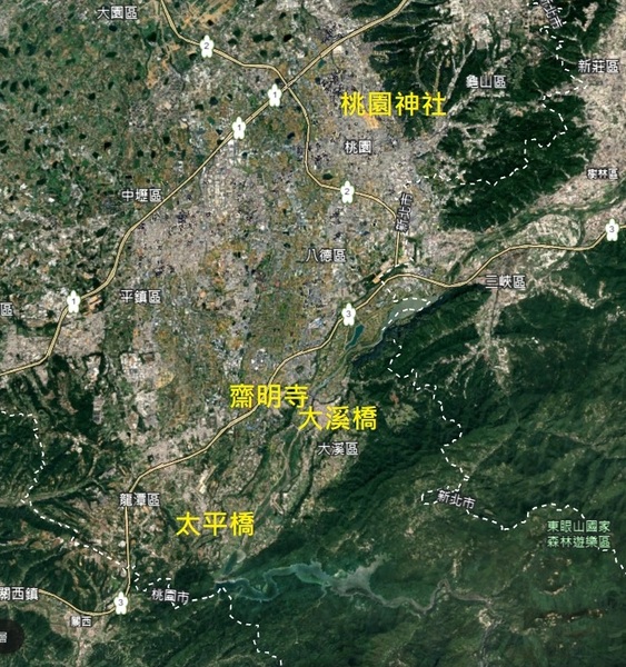 桃園神社位於桃園市郊虎頭山麓,興建於1938年(昭和十三年)為日本時代所建,祭神為神道皇祖神天照皇大神,豐受大神以及大國主命等,設計者為「春田直信」。直到對太平洋戰爭結束後,台灣歸還中華民國,逐改為祭祀抗日人士之忠烈祠。