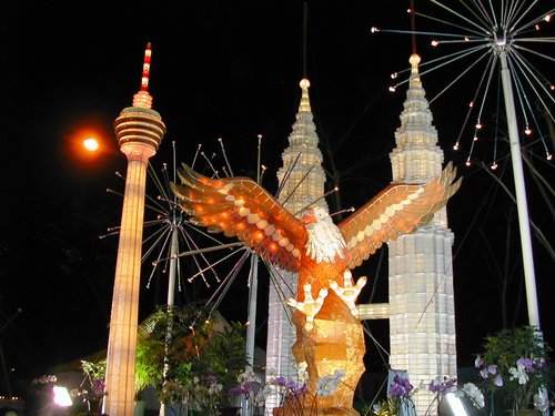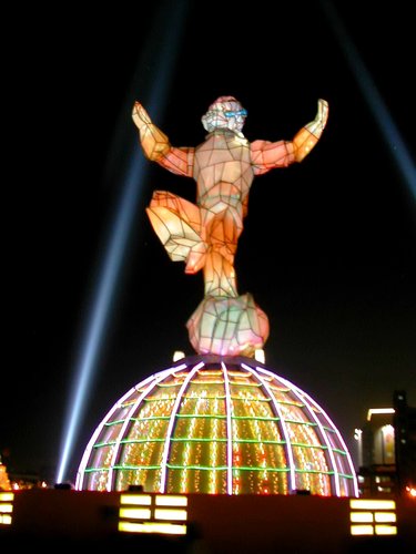 以科技獼猴身穿太空衣為主題,取猿猴節節高升,象徵國家社會不停的進步,終至登峰造極。獼猴造型採擬人化。主燈總高度達22.5公尺,總重量達25公噸,台鐵亦配合發行板橋~松山紀念區段票。展後移到於臺北縣八里區左岸公園,後來因為年久失修、斑駁不堪已被拆除了。