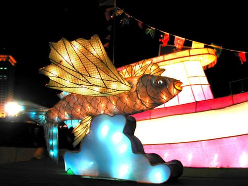 猴年主燈昨晚發亮,今天晚上七點,將由陳水扁總統和台北縣長蘇貞昌正式點燈。