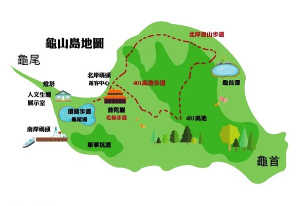 為一半淡鹹水湖,呈長方形,東西長約400公尺,南北寬約200公尺,是由礫灘堆積時所圍成的低地,原本為龜山島漁港所在地,後因崩塌堆積物阻隔漁港出口而成。管理處在湖邊設有一環湖步道,長約650公尺。