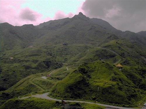 基隆山(古稱雞籠山)海拔588公尺,位於九份與金瓜石之間,是一錐狀形死火山,如一座海岸小山脈,從基隆、鼻頭角,眺望像似「雞籠」而得名;早期先民航行於東北角一帶以基隆山 為指標,依基隆港為座標。清光緒元年(西元1875年)取基地昌隆改為基隆。基隆山兀立挺拔,稜線分向瑞濱、水湳洞、九份、金瓜石,山頂有一個360度視野極佳的平台,是欣賞山城海景的好地方,不同角度美感皆異。從金瓜石或九份福山宮廟中廟遠望,山狀彷若曲線分明的孕婦仰臥在大地上,因而又名「大肚美人山」。