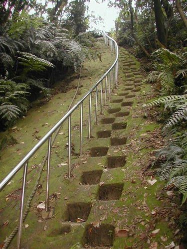 石階濕滑要小心行走