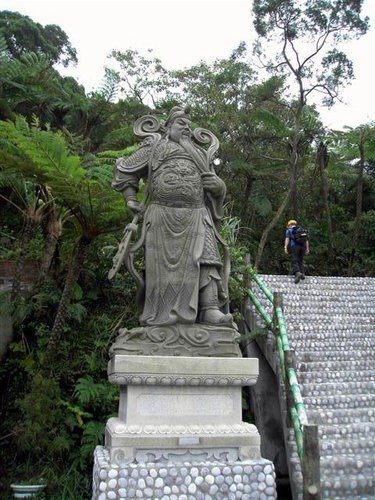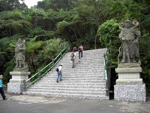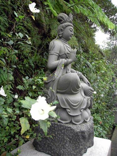 沿著朝山步道上山,佇立在一旁,慈悲守候的身影是三十三觀音,三十三觀音以不同的身相度化有緣人。觀音菩薩曾發願:「我若向刀山,刀山自摧折。我若向火湯,火湯自枯竭。我若向地獄,地獄自消滅。我若向餓鬼,餓鬼自飽滿。我若向修羅,惡心自調伏。我若向畜生,自得大智慧。」因此,只要您願意,可以向觀音菩薩傾訴心中的罣礙煩惱,失落無助,讓觀音菩薩給您更多的力量與勇氣,渡過生命的低潮。守護眾生,守護您,是觀音菩薩不變的誓言,是觀音菩薩生生世世普度眾生的悲願。參訪完三十三觀音後,映入眼簾的是一座灰色樸實的中國古城門,這就是北海道場。