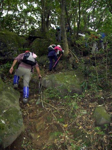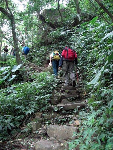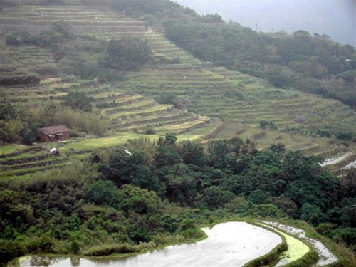 位於石門尖山湖附近的嵩山梯田,是全臺唯一用陽明山火山岩砌成的百年石砌梯田,三百年多年前,先民以三角鼎立法來堆砌田埂的邊坡石墻,一塊塊石頭層層交錯出美麗的幾何圖案,搭著附近的田間小徑別具美感。