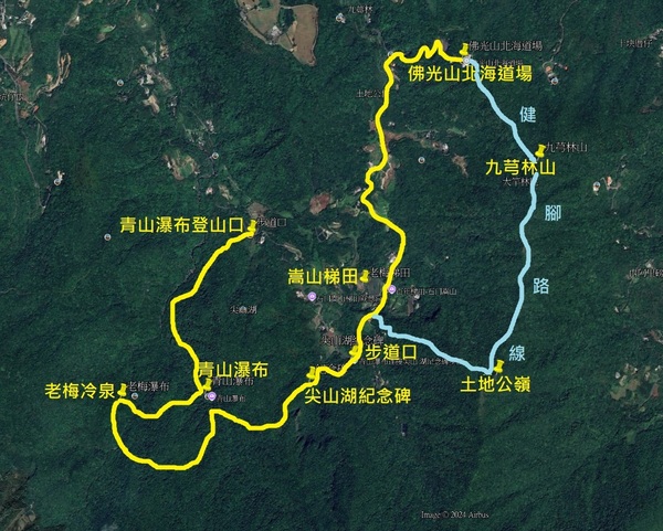 隸屬陽明山國家公園管理區的青山瀑布是老梅溪的源頭,在最北端的土地公嶺之側,行政區域隸屬石門鄉尖山湖山區。背倚高聳龐大的竹子山,匯聚豐沛的水量,由於溪谷斷層造就了青山瀑布,再流經老梅溪出海。沿途綠樹成蔭,即使烈日當空也不用擔心太陽曬,而且越往裡走越覺涼爽,但地勢卻是越走越險峻,只有前500公尺為較平坦的步道,之後就變成石子路,接近瀑布前兩旁的樹根更是盤根錯節的阻礙了去路,路彷彿是被踩踏出來的,在此行走,更要小心石頭上滿布的青苔,以免滑倒。