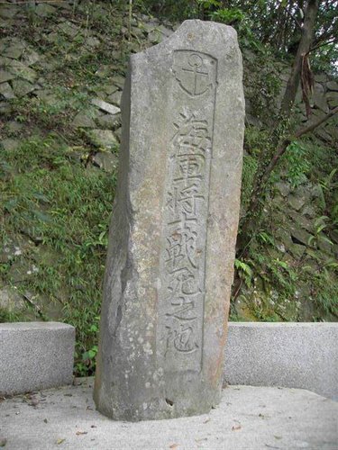西元一九三七年爆發中日戰爭,同年(昭和十二年)十一月二十六日,日本從台灣派遣海軍航空隊前往中國作戰,當天天候不佳,到達漢口上空時又因該地風雲密佈視野不明而決定返航,途經石門鄉尖山湖,卻不慎墜落一架戰機,機上七名軍士官全部罹難。日本當局為了紀念七位戰士,遂於墜機一週年紀念日(昭和十三年十一月二十六日)由淡水郡守久武猛彥撰寫碑文,台北州知事藤田偵治郎在尖山湖墜機地點豎立紀念碑。之後每年的十一月二十六日,台北州知事均召集淡水郡及石門莊的地方仕紳和學生代表,前往紀念碑弔祭。