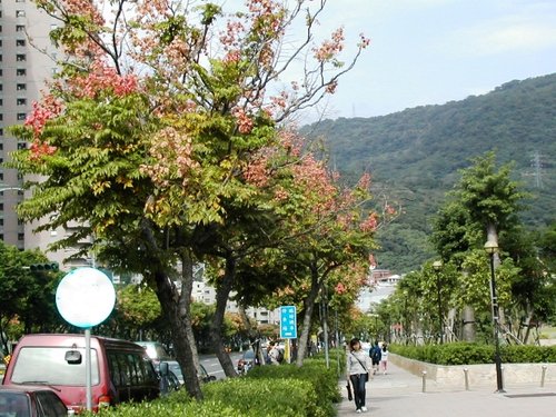 下山後走到忠誠路上看深秋滿街欒樹褐紅的果實
