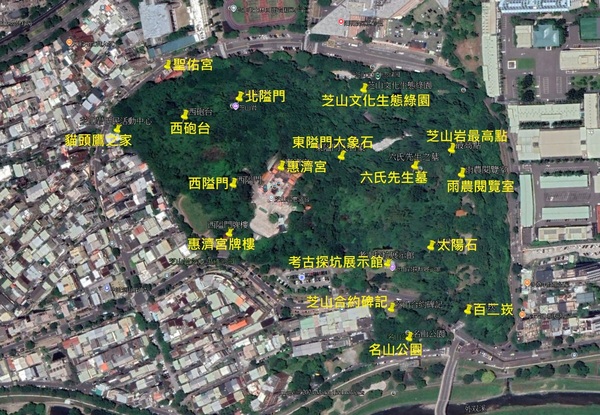 芝山岩為臺北市士林區石角的獨立砂岩小山丘,位於台北盆地北側邊緣,為地勢北陡南緩的單面山,標高約51.5公尺,面積約10公頃,當地人也稱此山為「圓山仔」。