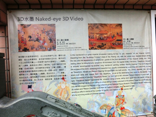 自100年度起,國立故宮博物院陸續推出清明上河圖等六系列故宮書畫之高解析動畫,統稱「古畫動漫」,以無接縫熔接技術將四台1080p Full HD高解析投影機,組成仿書畫長卷之長形螢幕光牆,讓觀眾置身8公尺寬的科技畫境中,體驗中國長卷繪畫之意境。