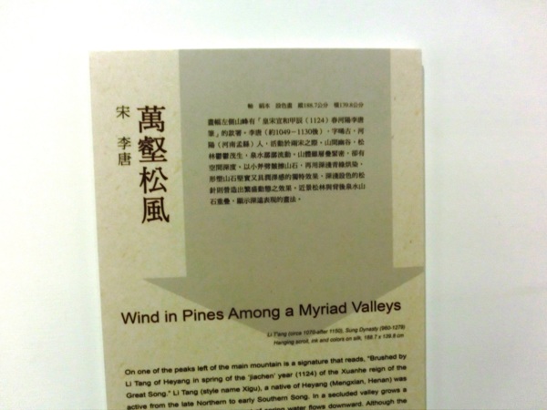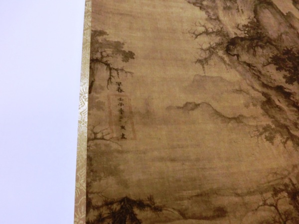 這一幅畫在主峰旁邊的遠山上,題有「皇宋宣和甲辰春河陽李唐筆」。甲辰是宋宣和六年(1124年),李唐已經是76歲了。儘管如此高齡,畫中表現的山石仍然是雷霆萬鈞的陽剛力量。