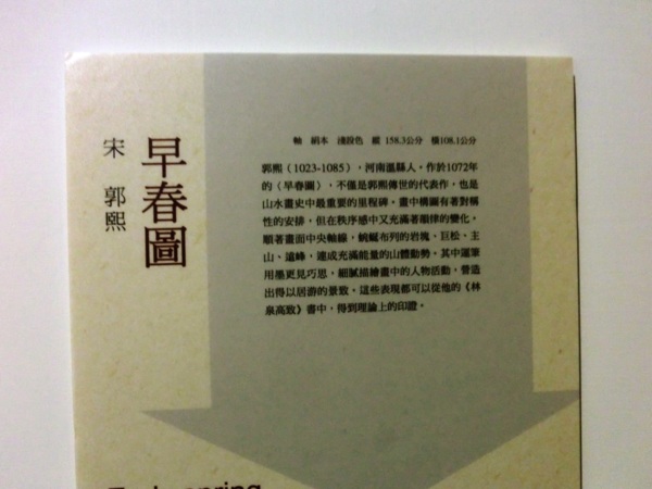 《早春圖》採全景式構圖,上下留有天地,遠、中、近景則巧妙地布置於「十字形」架構內。