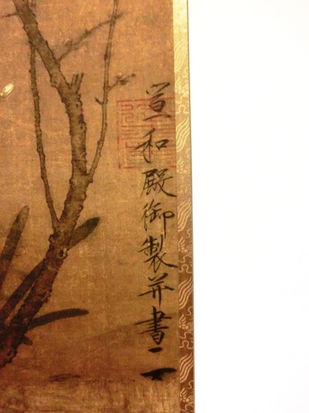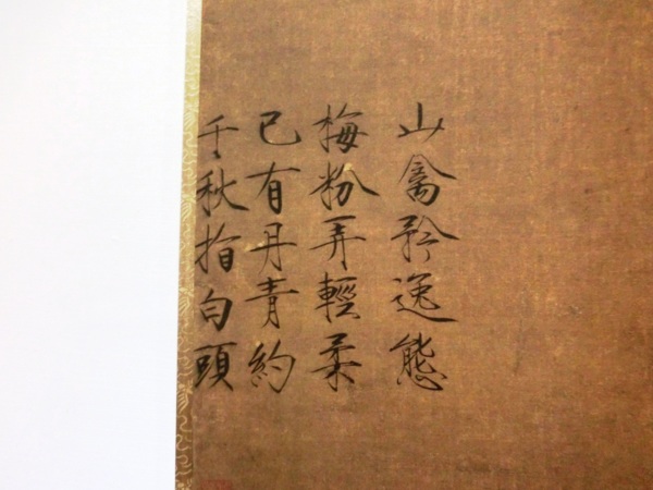 畫幅左下方,趙佶用瘦金體題詩一首:山禽矜逸態,梅粉弄輕柔。已有丹青約,千秋指白頭。