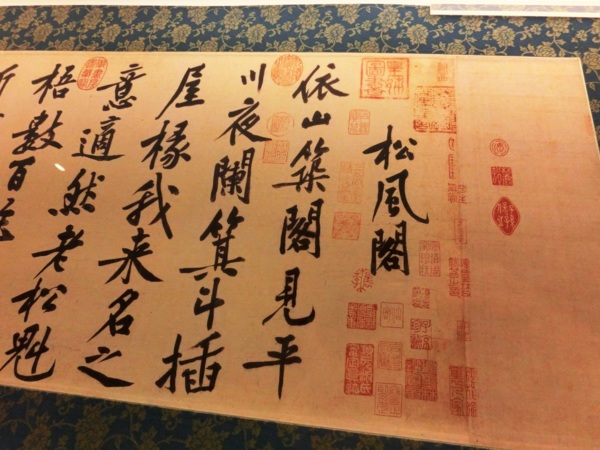 英宗至治三年(1323)三月甲寅(西曆4月28日),大長公主邀集文臣學士,於大都外城天慶寺飲宴,同賞書畫。會中由祕書監丞李師魯引導,漢人、蒙人、色目人不分族屬,濟濟一堂品題書畫。事後與會者袁桷 (1266-1327)撰文記載其事,並且追記曾經奉題書畫名目,可知〈自書松風閣詩〉也在品題之列。若檢視書卷拖尾,猶可見當時李泂 等人跋文十四則,也從而得知尚有魏必復、張珪 、王約、馮子振 、陳顥、陳庭實、孛朮魯翀、李源道、袁桷、鄧文原 、柳貫 、趙巖、杜禧參與盛會。雖然當時詳情難以盡知,經由書卷的流傳以及時人記載,得以知悉元代皇室書畫雅集活動,已然融合各個族群,而無論蒙、漢、色目 ,對詩文書畫都具有相當的修養。(王競雄)