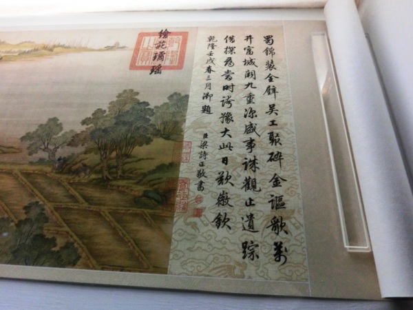 此卷是由清宮畫院畫家陳枚(1694-1745)、孫祜、金昆、戴洪與程志道通力合作完成。以人物景致繁多取勝,可謂是集各家所長的作品。全作分為鄉野風光、虹橋市集、城門內外及金明池。除了熙來攘往的人物,櫛比鱗次的商店,還有逸趣的文人園林、輝麗的皇室苑囿,極力營造熱鬧喧囂的氣氛,堪稱十八世紀城市風貌的縮影。建築均依據透視原理,房舍街巷經絡分明,大小比例與遠近距離,莫不精準掌握,且有西式建築列置其中。筆墨精謹與色彩斑爛,是院藏同題作品之最精者。