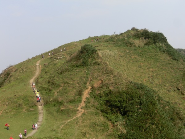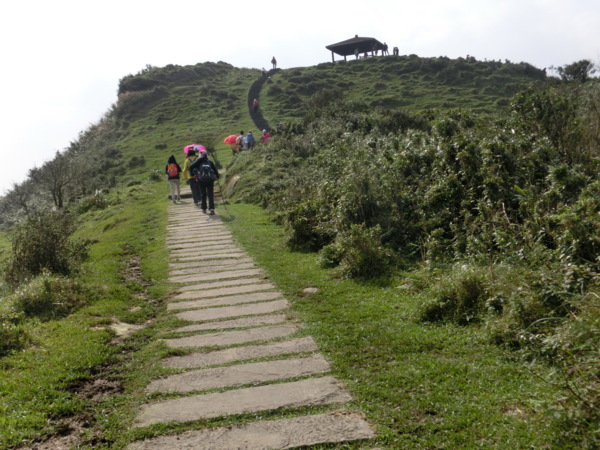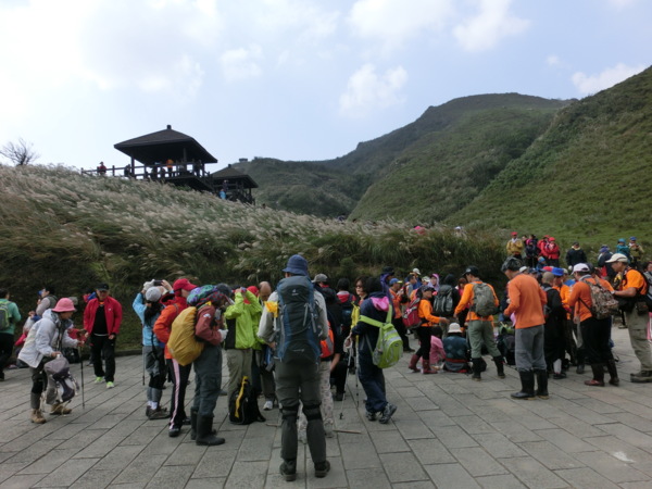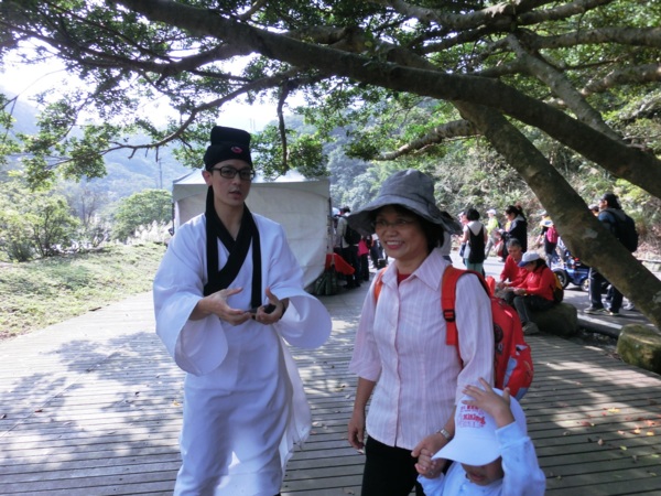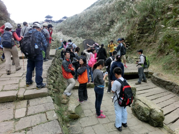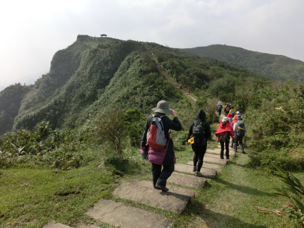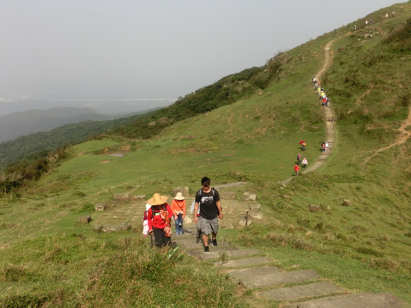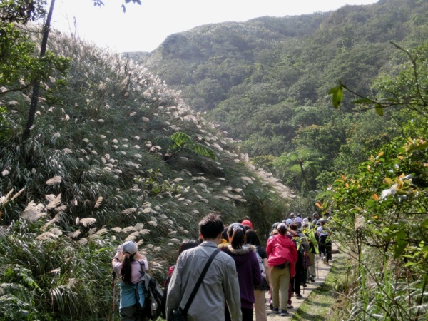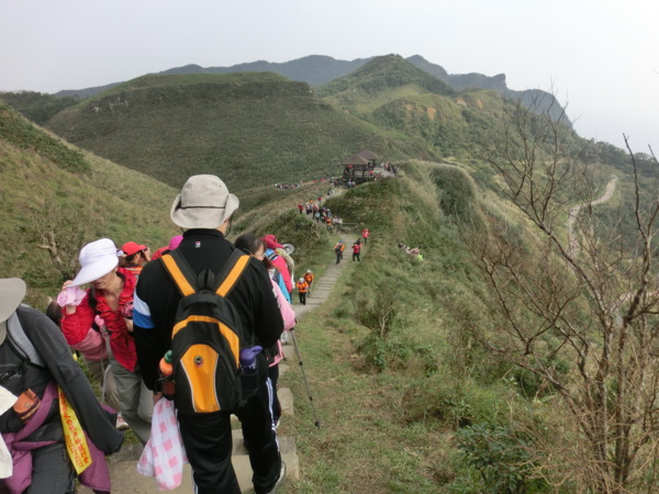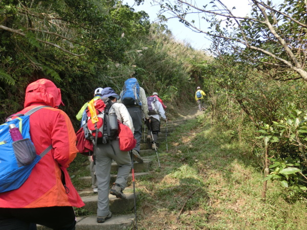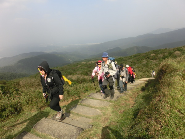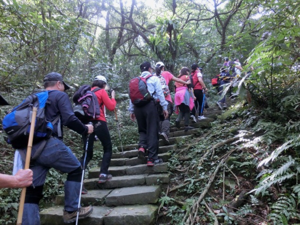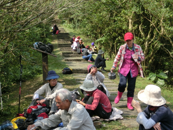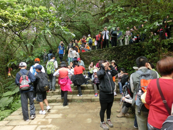 09:26 整隊完畢(遊客眾多,各路人馬雜遝,每人配戴登山路條以為辨識)出發