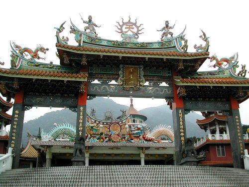 「淡水天元宮」位於大屯山脈西北邊,距離淡水市區、淡水捷運站約5公里路程,在西元1985年落成,正殿供奉無極老祖,主神為玉皇大帝;1992年增建「無極天元真壇」,高為200公尺,樓高五層樓、圓形的建築外觀直徑高達108公尺,非常雄偉及壯觀,每個殿供奉無極界的諸位先佛,櫻花季時雄偉的天壇與櫻花相互映襯,非常值得一訪。