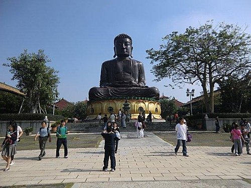 八卦山大佛位於八卦山半山腰約莫海拔74公尺處,為一尊盤坐於4公尺高蓮花座上的釋迦牟尼佛,彷日本鎌倉大佛造形,總體高約23公尺,底座約694平方公尺。是彰化人的守護神。