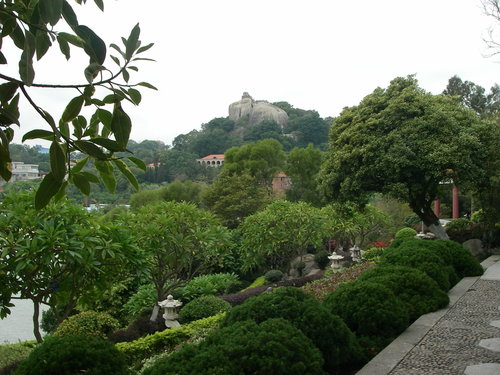 菽莊花園建於1913年,位於鼓浪嶼南部,原是名紳林爾嘉的私人別墅。1956年,園主親人將此園獻給國家。“眉壽堂”位于入園庭院右側,表示祝願長壽的意思。又名"談瀛軒",因臺灣古時稱瀛州,此乃表示懷念臺灣的意思。“壬秋閣”建於農曆歲次壬戌之秋而得名,落成之日,正逢久雨初晴,江山如洗,主人趁此良辰邀客吟詩,在此可觀山賞海,盡收眼簾。“四十四橋”乃全園主景,因主人建橋時四十四歲而得名。此橋下有閘門,把海水引入園內,構成了大海、外池、內池三處。橋上有觀魚臺,渡月亭,千波亭,明月之夜,遊此最佳。