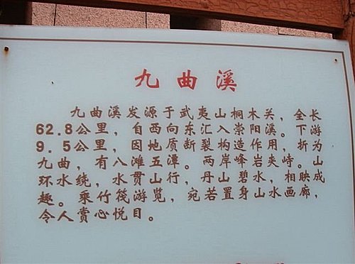 福建省閩中山水奇秀以武夷山為第一,而武夷之魂在九曲溪,九曲溪澄澈清瑩,經星村鎮由西向東穿過武夷山風景區,盈盈一水,折為九曲,因此得名。九曲溪發源於武夷山自然保護區桐木關的西北角,全長62.8公里,流域面積(匯水面積)526平方公里,自西向東流至武夷宮匯入崇陽溪。526平方公里的流域面積列入自然保護區範圍的有125平方公里,列入風景名勝區範圍的有37平方公里,以及九曲溪生態保護區364平方公里。