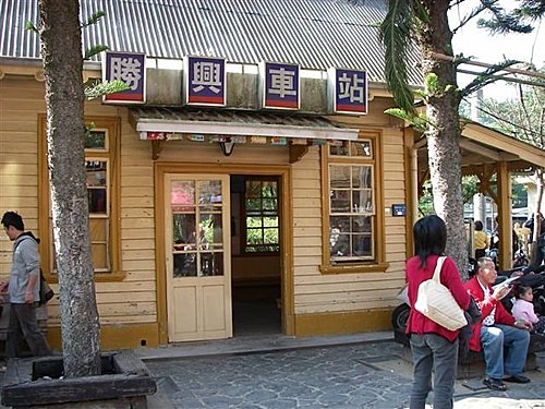 勝興車站現存的木造站房於大正元年(1912年),全部以福州杉為建材,其特別之處,在於整幢建築每根樑柱桁桷,均用榫頭與榫眼結合,沒有使用一釘一鏍。屋簷成鋸齒狀,並以八卦和矛頭等造型裝飾樑柱,極為獨特。