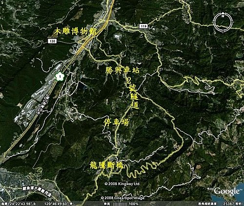 →二號隧道→龍騰斷橋→停車場→三義木雕博物館