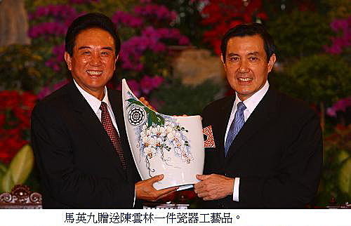 原定在6日下午3點在台北賓館舉行的「馬陳會」,因為5日晚上爆發的流血衝突,凌晨1點臨時決定,要提早到上午11點進行,馬英九送陳雲林一個代表蘭嶼達悟族的的瓷器花瓶,陳雲林也回贈一幅駿馬圖。