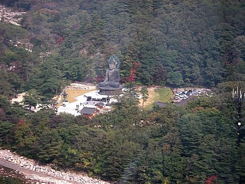 新興寺寺前的青銅釋迦如來佛像,在香港大嶼山的天壇大佛未落成前,曾是世界最大的戶外青銅坐佛,高 14.6米,歷時 11年建成,佛像腹部藏有3顆釋迦牟尼真身舍利,是1992年由緬甸政府贈送,而座台上還有16尊祈求韓國統一的羅漢像。