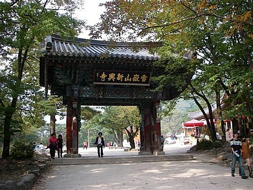 新興寺建於新羅時代西元652年,其後遭大火焚毀又重建,除石塔、壁畫外,還有大雄殿、冥府殿等名勝。新興寺身為大韓佛教曹溪宗第三教的總寺,地位算是十分高。其中窗戶的丹青窗花十分獨特,還有浮屠群及碑石都是江原道內重要的文物遺產。