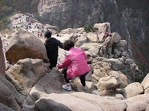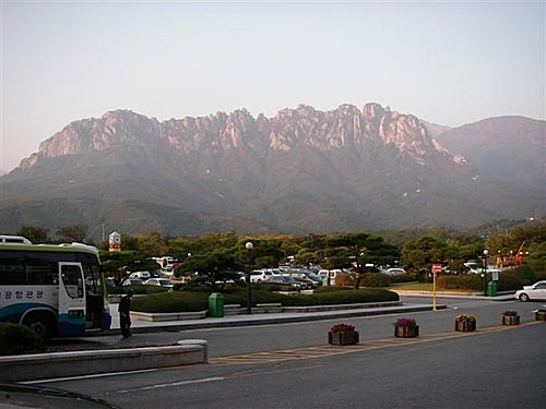 雪嶽山是朝鮮半島骨幹太白山脈的主峰之一,可分為東部的外雪嶽、西部的內雪嶽以及南雪嶽三個區域。最高峰大青峰海拔1708公尺,是韓國第三高峰。雪嶽山入口有四處,最有名的是束草市的新興寺,其餘三處為襄陽郡的五色區域、麟蹄郡的百潭寺以及將帥台。由於山勢高聳,加上蜿蜒溪流、瀑布以及古寺廟遺跡,吸引許多登山客前來尋古攬勝。