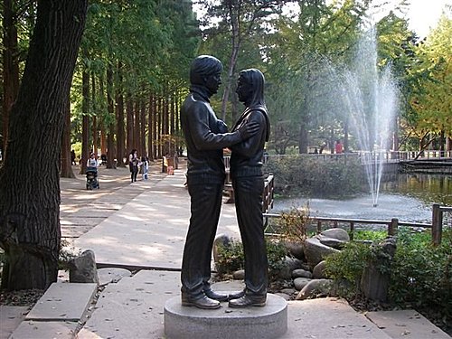 南怡島位於首爾至順川63公里處,長長的道路兩側種植著美麗的街樹。小島距順川不過30分鐘,離首爾也才1個小時,是戀人或全家大小常觀光的景點。由於韓劇《冬季戀歌》在此拍攝,更成了韓劇迷必定要去朝聖的景點。