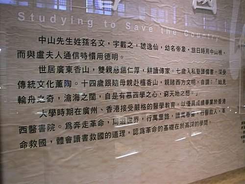 孫中山在檀香山學習五年後,於1883年回國,又先後就讀於廣州南華醫學堂和香港西醫書院。在學習期間,常與好友陳少白、尤列、楊鶴齡三人議論時政,抨擊朝廷,闡述革新抱負,被時人視為大逆不道,稱為“四大寇”。1892年,孫中山以優異成績畢業於香港西醫書院,開始在澳門、廣州等地行醫濟世。