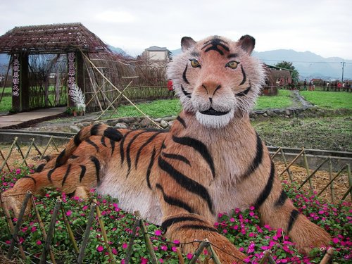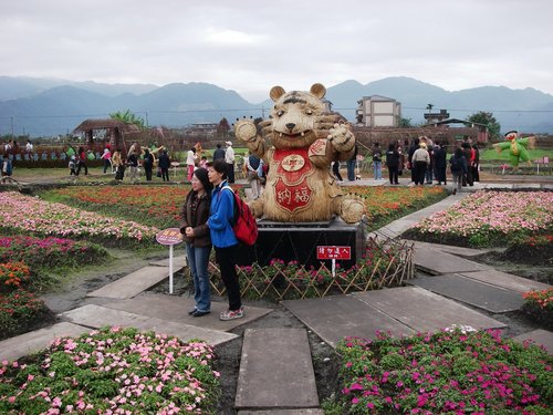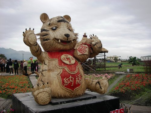 三星加油站對面的銀柳節主題園區,由鄉公所種植景觀綠肥,設計各種裝置藝術,包括稻草虎、稻草人、稻草青蛙、小丑肖像,搭建銀柳隧道、茅草涼亭,園區花卉陸續開花,美不勝收。