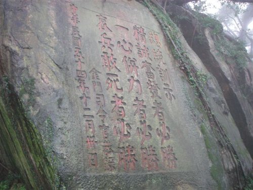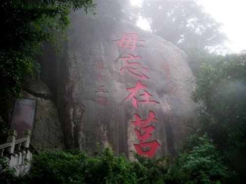 太武山海拔253公尺,為金門最高峰,地處金門島嶼的正中央,戰役史蹟豐富,是八二三砲戰重要的紀念地,還可鳥瞰金門田野風光。山頂「毋忘在莒」勒石,高有數十丈,是根據1952年先總統蔣中正的墨跡印刻而成,為金門最著名的地標。