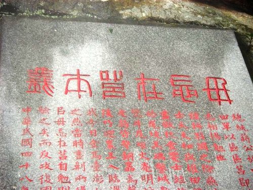 這塊勒石刻高十數米,勒石完成之初,許多人不識 「毋忘在莒」為何義,一九五九年,才由秦孝儀撰寫一篇「毋忘在莒本義」,刻成石碑,銷在勒石左下方,敘述田單以雙城復國的故事,闡釋毋忘在莒的歷史典故。