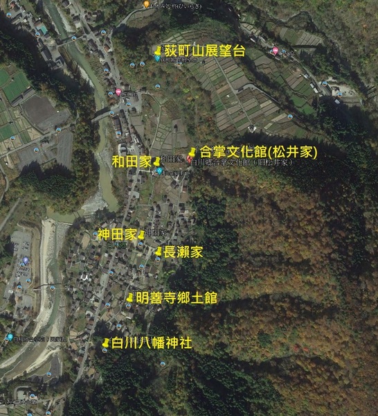 「合掌集落」位於日本岐阜縣白川鄉荻町,為世界文化遺產之重要傳統建築物群保存地區,總共有 113棟合掌建築,其中受傳統建築物指定的有109棟。「合掌屋」屋頂如人的兩手合掌時,成60度的三角房屋,建築主體是木材建造,屋頂則舖茅草,利用卡榫及結繩構成,沒有使用釘子及石塊,每間合掌村之屋齡均在百年以上。除部份合掌屋開放遊客參觀,陳列早期養蠶織布與農耕器具外,部分還作為民宿、餐飲、特產店等使用,發展成世界遺產文化觀光聚落。