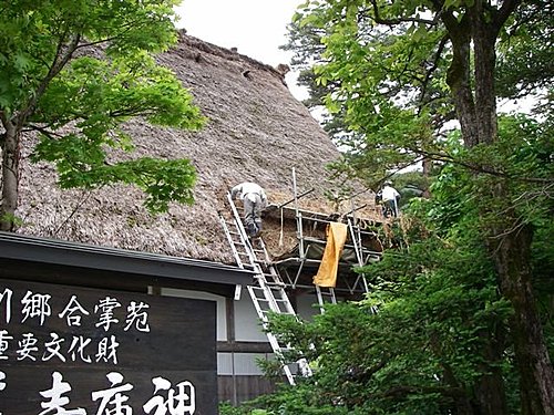 通常一棟合掌屋平均30年須更換屋頂一次,村人都利用早春還未耕作前更換。在修繕時幾乎都動員村裡100多人,男人修屋頂、女人負責作飯,這樣的盛況都會吸引許多觀光客前來參觀。