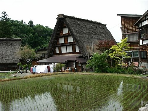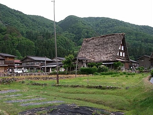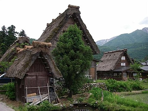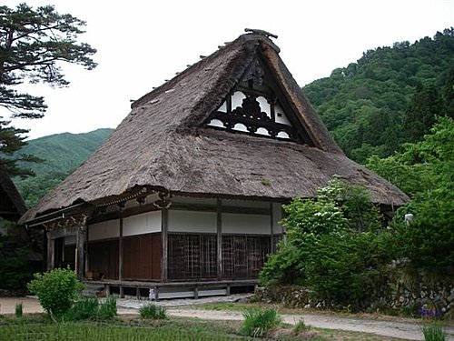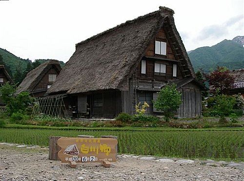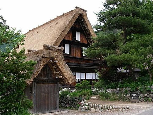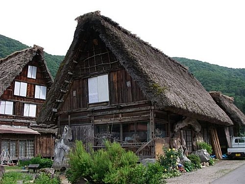 「合掌屋」指屋頂如人的兩手合掌時,成60度的三角房屋。在40年代德國建築學者就說白川合掌屋是最合理、最理性、最天人合一的建築。1996年年底,聯合國教科文組織把白川鄉的荻町合掌集落、鄰近的白山全登錄為世界文化遺產。白川地區由於冬天嚴寒,這種房屋特別適合大雪地區居住,房屋主體是木材建造的,屋頂則舖蓋茅草,利用卡榫及結繩構成,沒有一根釘子及石塊,這裡每間合掌屋的屋齡都在百年以上。