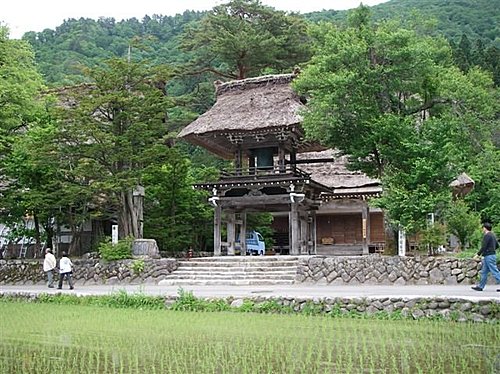 明善寺庫裡,是200年前所建的合掌式僧房,改成鄉土館開放參觀,入內要收費300日幣。它足足有五層樓高,據說沒有使用任何釘子或插銷,只使用木卡盾和繩子來固定柱子。