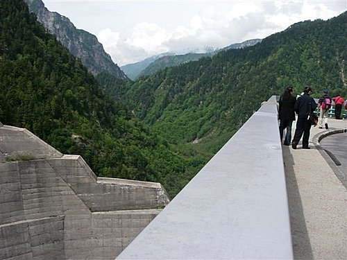 黑部水庫壩堤上看黑部峽谷
