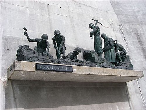 殉職者紀念碑,這是一座由日本雕塑名家松田尚之創作的「六具人物像」,上面刻著「獻給至尊至敬的英靈」,以紀念當年在修築水庫時殉難的171名工程人員。
