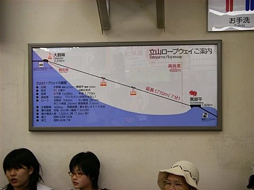 1.立山驛(車站)→美女平【立山登山鋼索鐵道1.7km 7分鐘】海拔977m