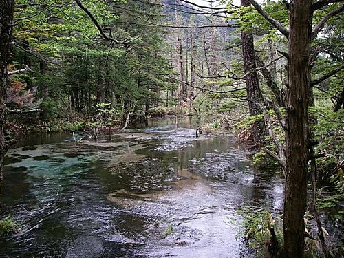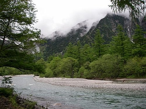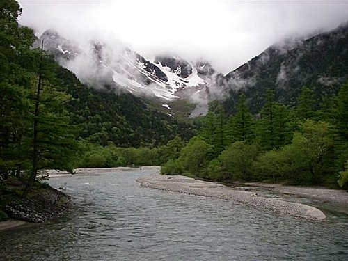 『上高地』日語叫做Kamikouchi,位於長野縣西部,梓川上游,海拔約為1,500公尺的盆地,古時被稱為 "神鄉地",相傳是神居住的地方。經19世紀之英國傳教士兼登山家沃思特威斯頓的介紹而廣被全世界的登山家所知,成為日本著名的風景勝地。上高地被穗高連峰、燒岳、常念山脈等環抱著,一入冬就全被冰雪覆蓋,屬於中部山嶽國立公園。當地政府為了保護上高地的森林原貌,限定低汙染車輛才能進入。