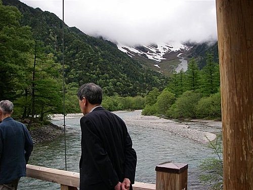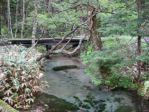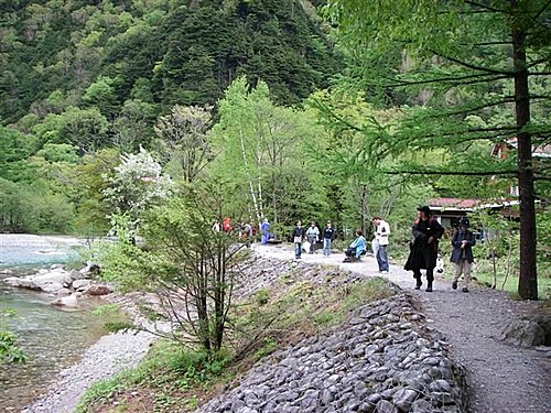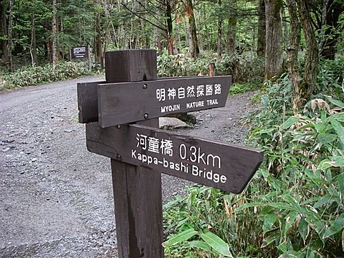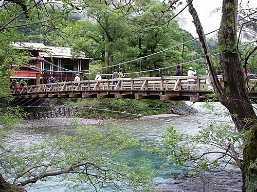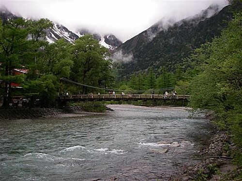 梓川上有一座木吊橋,叫做『河童橋』,橋長約36米、寬約3公尺,為上高地的標誌。
