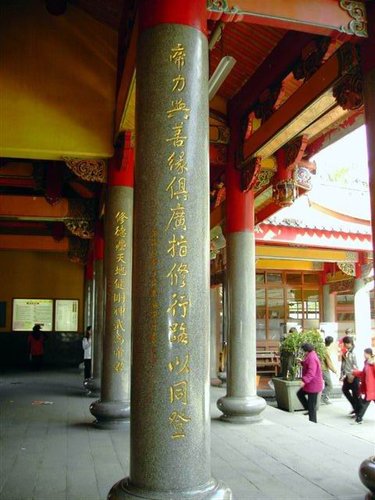 山門左.右山門各三開間,左山門又稱為「龍門」、右山門又稱為「虎門」。其中門乃是連通外埕與護龍的主要通道,古人一向左進右出,動線分明十分流暢,亦取「出將入相」之意。