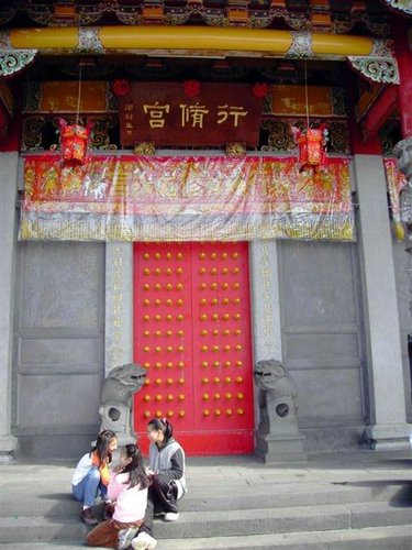 置於中門的門柱前,它的功能是作為門柱柱礎的一部分,可以防止門柱搖動,基座稱為櫃台腳。行修宮以麒麟為鎮門獸,一般寺廟則安置石鼓或石獅。左邊放雄獅,前肢玩繡球;右邊放雌獅,戲小獅子。