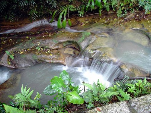 - 河流坡度(Stream Gradient):基隆河自源流到七堵的上游河道坡度達1/108,且遍布大、小瀑布、急流,導致水流通過時易生急浪而產生壺穴。